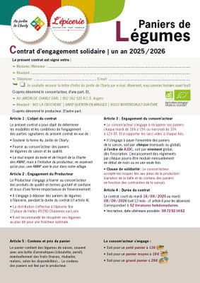Merci de prendre connaissance des modalités pour les distributions et les absences, ainsi que de bien renseigner vos coordonnées. (Notamment pour que nous soyons en mesure de vous prévenir, en cas d'imprévu ou d'oubli de votre panier).